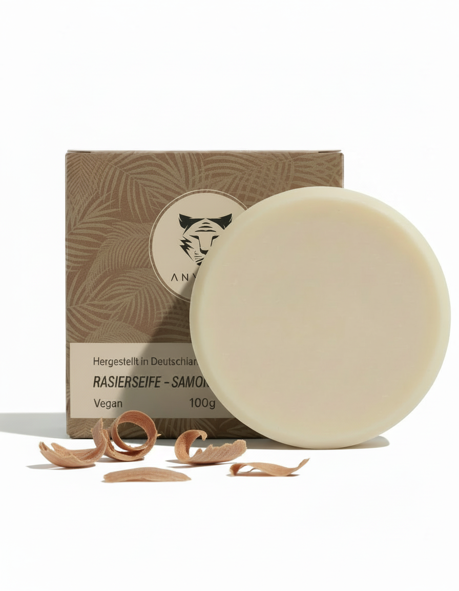 Mit unseren Rasierseifen erhältst du eine Seife mit natürliche Inhaltsstoffe, die nicht nur für eine einfachere Rasur sorgt, sondern gleichzeitig die Haut pflegt. Die ANYMALE Rasierseife ist auch für empfindliche Hauttypen bestens geeignet.
